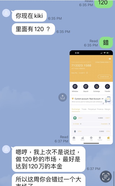 隨後,他要求我將資金兌換為以太坊(ETH),轉入 imToken 錢包,再「轉入 KikiTrade」。在整個過程中,他提供詳盡的截圖、話術和理由,解釋為何要繞過某些平台或加快流程。