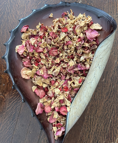 我收集落下的花瓣,曬乾,送給朋友。