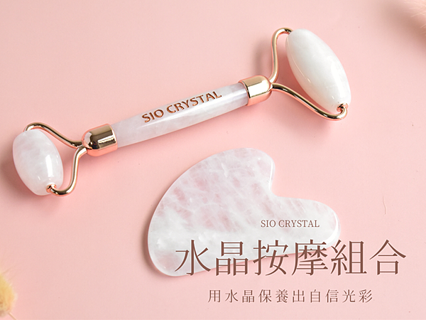 希奧水晶按摩套組內含水晶滾輪和水晶刮痧板,除了臉部按摩外也可以進行手部、腳部按摩,用水晶按摩全身,感受水晶特有的冰涼按摩舒適感,並且化身為宮廷娘娘變得高尚又優雅吧!