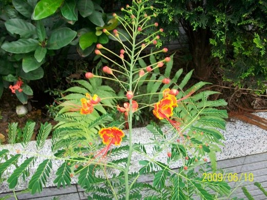 98.6.10是一年一度的畢業典禮,那天放學後跟老婆去「五期重劃區」散步、運動。習慣隨身攜帶數位相機的我,在一戶人家外頭的盆栽上看到這「金鳳花」。我想不少人會以為這是「鳳凰花」,但我小學時校園內就遍值鳳凰花,所以我不但清楚什麼是鳳凰花,也知道所謂鳳凰花開所代表的意涵。雖然當時我並不清楚這是什麼植物,但我並沒有以為他是鳳凰花。不過拍下照片的原意也是在此,除了當作紀念之外,我也在等有朝一日能印證、得悉她是什麼花。有幸的前一陣子在網友部落格裡看到同樣的花~金鳳花。