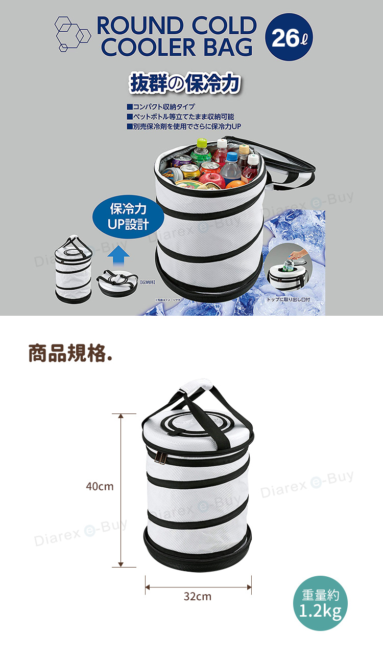 - 【品名】鹿牌摺疊保冷袋 圓形26L UE-564