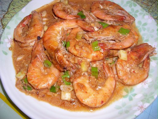 2.蝦洗淨.由腹部切刀劃開備用.起油鍋放入香油.沙拉油爆香蔥.薑.蒜辣椒 末在放入蝦及調勻的1料加鍋蓋悶燒收汁.起鍋前加入蔥花即可.
