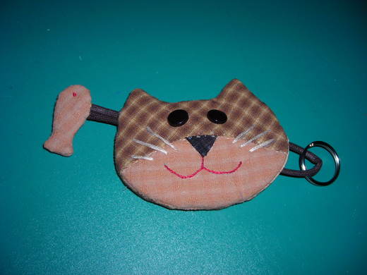 從拼布工場拿回這材料包.ㄧ直沒時間做.直到老公的同事要一個鑰匙圈所以就先作了一個給她.這兩天較空所以也將零錢包給它完成.沒想到布還夠再作一個零錢包.所以就作了一對.真是高興.ㄧ包480元的材料包元本2 作品就覺得很便宜.沒想到多出一個.真是物超所值.又加作了一隻貓鑰匙圈