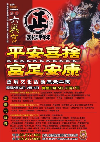 【記者彭頎盛/全國報導】 溪北六興宮為提升寺廟宗教文化活動優質化,暨帶動文化觀光事業發展,遂發起嘉義市友宮寺廟,以嘉年華會方式連結公益慈善、環保新科技辦理『平安喜捨★正★富足安康』遶境文化活動,由主辦...