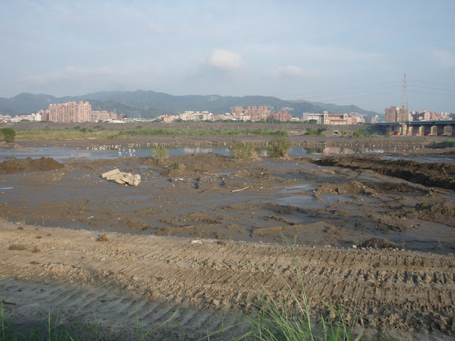 城林橋邊大漢溪 正在建造一個人工濕地 ,所以工地凌亂不堪, 溪中部分段落挖深積水,幾百隻白鷺就在水邊覓食. 也是一大景觀!