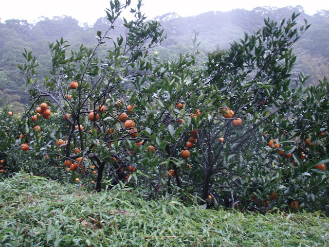 橘子結實纍纍整個果園長得滿滿的!很好看!繼續前進!一些未開發的林地,幾株野生櫻花點綴其中!路越來越陡,騎到快騎不下去,前輪都要翹起來了!下車牽了10幾公尺,到一個迴車區.