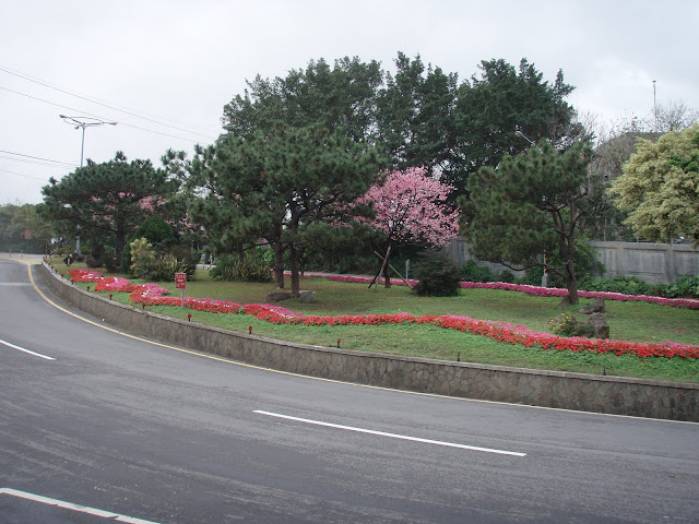 到了安全局門口邊,安全島花圃維持裝飾的很漂亮!