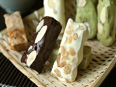 綠茶系列的牛軋糖有著綠茶杏仁和綠茶花生兩種口味,不僅色澤上有著引人注目的外表,新奇的口感同樣讓人驚豔。