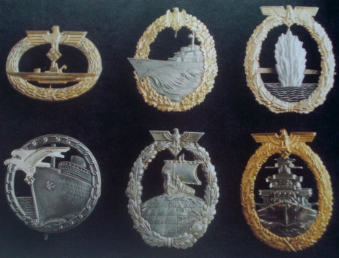 由上左起: U艇章 、 驅逐艦章 、 掃雷艇章 。
