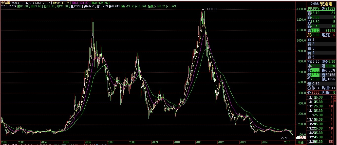宏達電的K線走勢圖. 這能怪王雪紅嗎? 當然不能. 過去十年以來, 臺灣人的消費習慣就是 "撿便宜". 凡是市面上的任何一項產品, 大家都是不管品質,只管價格, 只要是價錢便宜就可以買....