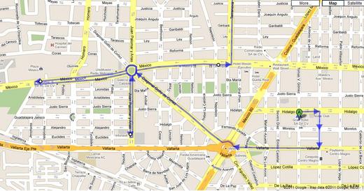 在 Guadalajara 的圓環大大小小, 我看超過十個, 除此之外, 小的路口有四條連接道路, 大的路口會有六條, 甚或是多於六條的連接道路, 這叫路痴的我, 如何是好呢?