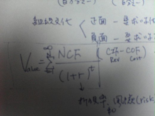 S博士講了一個公式,一家公司的價值與淨現金流量及風險相關。(如圖)