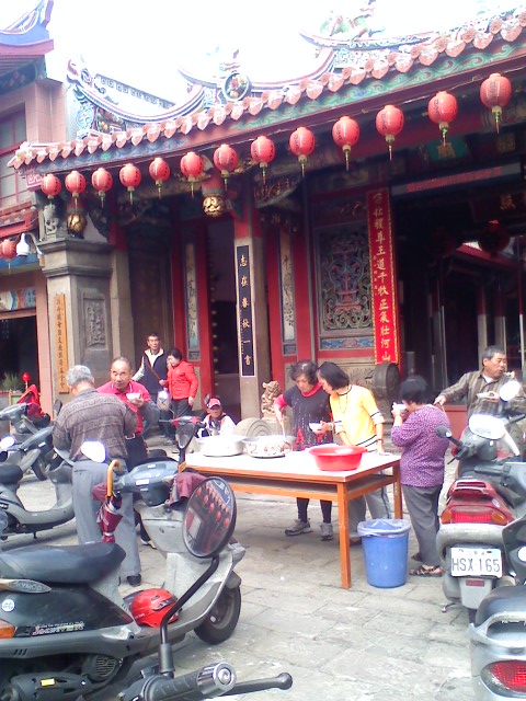 我隨機走進「關聖帝君廟」,其實我也不知道附近有什麼廟,看起來好像有活動我就走進去看看了,好像是哪位護法的誕辰,有一些熱情的阿姨在分熱騰騰的湯圓,好好吃!是那種地瓜和芋頭的湯圓,芋頭很香 ^ ^ 但是裡面有我很怕的芹菜……看著旁邊的每位都吃得精光我也只好硬著頭皮吞下去了,真的……阿!幸好胡椒很多,味道都蓋過去了。