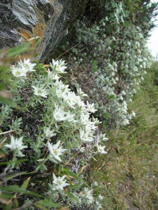 當時猛然一看,心中一怔~還真的跟台灣的玉山薄雪草同一個樣兒*_*,而且竟然長在玉山這座大眾化的路線上,怎麼突然有種幸福的感覺ㄏㄏ~台灣真不愧是福爾摩沙,那天我也要親眼去看看它的盧山真面目 。