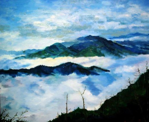 而雲,像ㄍ玩累的孩子,趴在山腰間隨著起伏,安穩睡著了