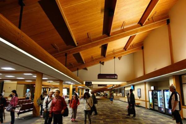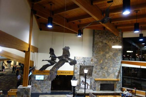 從明尼亞波利飛2.5小時降落到波茲曼機場,來到大廳看見屋頂和樑柱都是木頭建造,給人一種溫暖和回家的感覺,有別於一般機場冷冰的氣氛。牆上掛著繪畫和攝影的作品,主題是這裡四季的風景和各種飛禽,還有牛馬羊鹿熊等動物,看到這些圖片就知道離黃石公園不遠了。