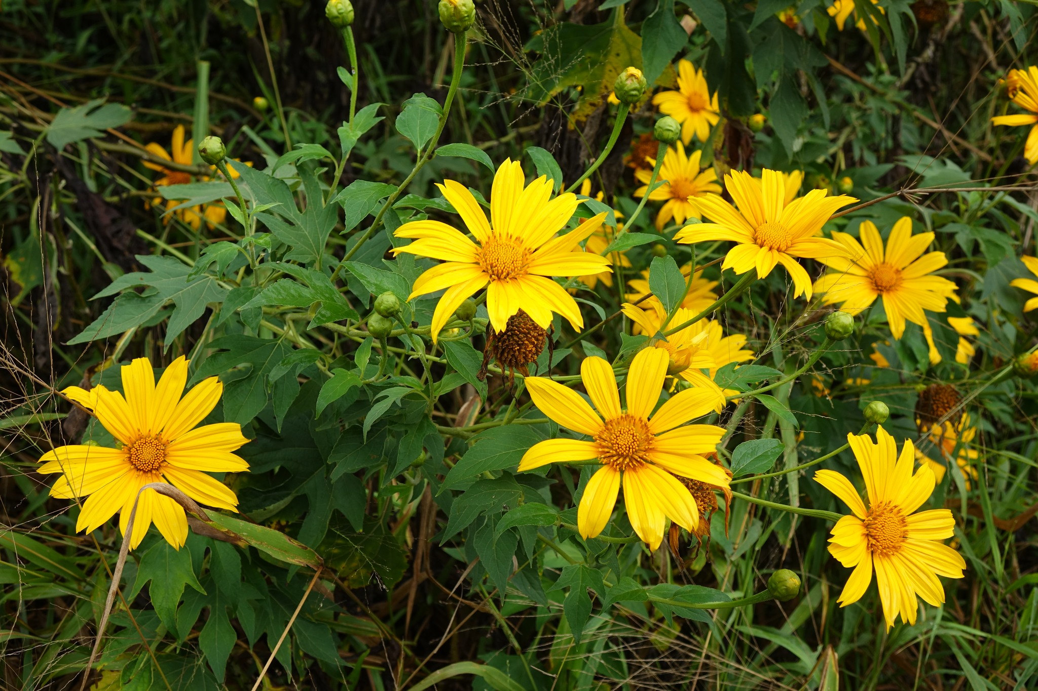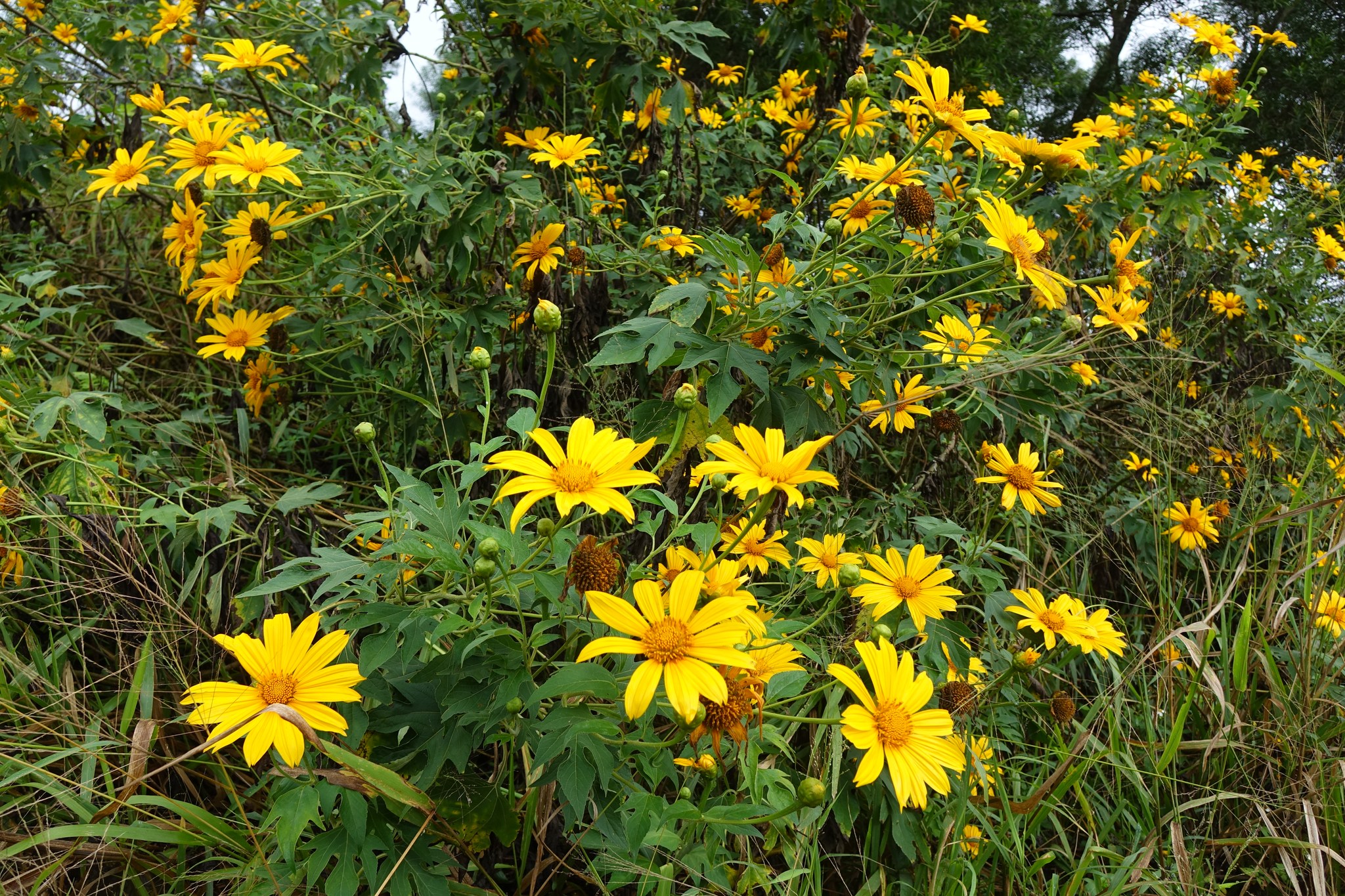 《黃野菊》冬天野外常見黃色的菊花,幾朵黃菊聚在一齊,遠看成一片,點綴著鄉野的景色。不知此花名,於是請教一位精通花卉植物的專家,告知此花名為情人菊,好一個浪漫的名字。2022/11/26攝於銅鑼 PS. 別名:王爺葵、太陽花、提湯菊、金花菊、假向日葵、腫柄菊、小向日葵、膽菊。 分布:台灣全島海濱至海拔1,000 公尺向陽處。 形態:多年生灌木狀草本植物,高可達2-5公尺
