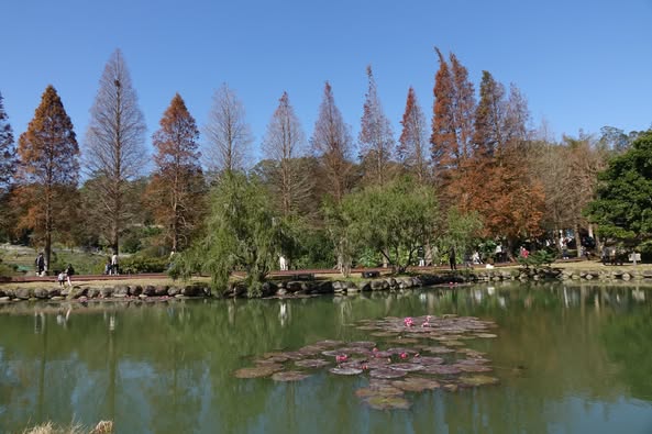 冬末的一個大晴天,來到鄉間的池塘,塘邊的落羽松已經漸漸凋落,然而風味猶存。遊客在池塘邊漫步走上一圈,還曬太陽。欣賞轉紅的楓葉,以及農家收成的紅柿。 2025年1月12日攝於北埔大湖