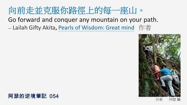 Go forward and conquer any mountain on your path.― Lailah Gifty Akita, Pearls of Wisdom: Great mind 作者