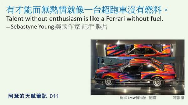 Talent without enthusiasm is like a Ferrari without fuel.― Sebastyne Young 美國作家 記者 製片