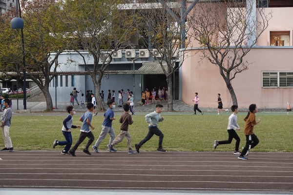 自從小學的圍牆改成鐵網之後,路上的行人就可看見學生在校園內的活動。一早學生就在操場上跑起來或是快走,可提高小學生的體力和活力。路人經過看見這群正在運動的小孩,也會提高多運動的動力。 2025年12月6日攝於新竹