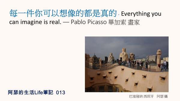 每一件你可以想像的都是真的。 Everything you can imagine is real. ― Pablo Picasso 畢加索 畫家