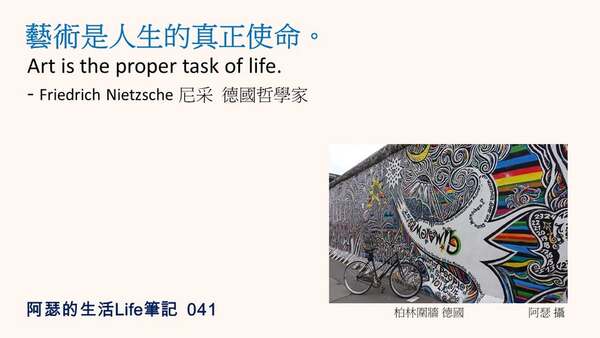 藝術是人生的真正使命。 Art is the proper task of life. - Friedrich Nietzsche 尼采 德國哲學家