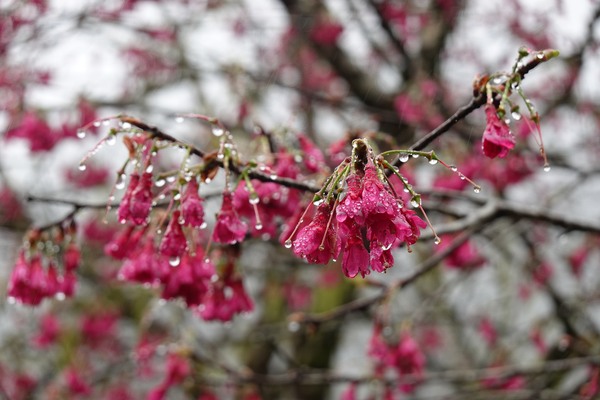 由三星鄉驅車往上爬,前往明池。一路上煙雨繚繞,似霧或雨。接近明池山莊時道路遭封守,因前方道路施工,靜待整點通行時下車欣賞四周山上景色。山櫻花在雨中開花,每一朵花都含水珠,另有一番風味。 2026年2月2攝於明池