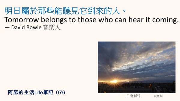 明日屬於那些能聽見它到來的人。Tomorrow belongs to those who can hear it coming.