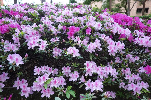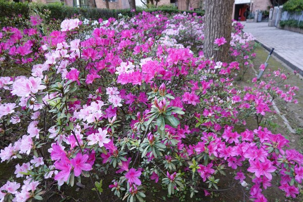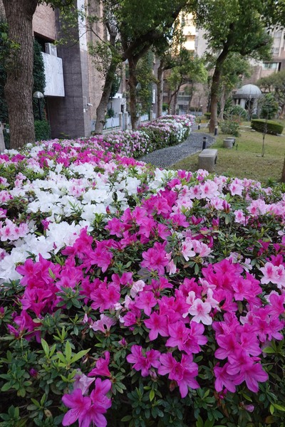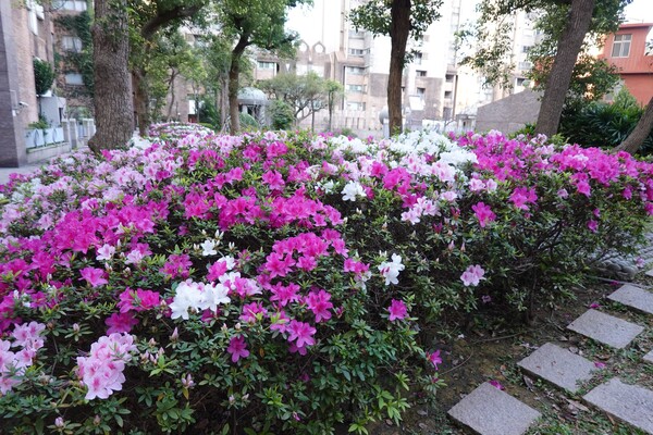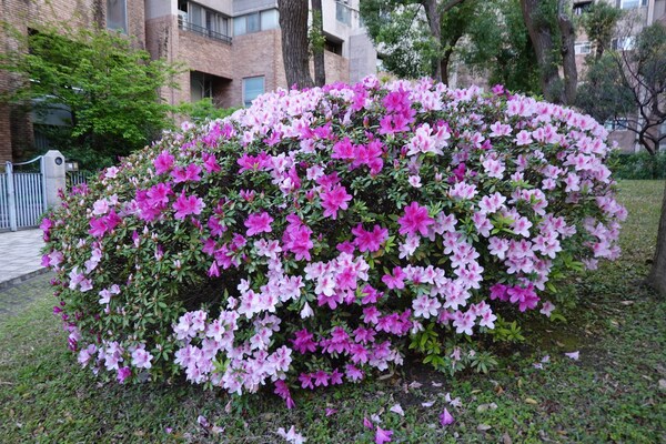 三月是杜鵑花開的季節,社區中庭的杜鵑有幾朵先由冬天醒來,然後喚醒其他的杜鵑花接二連三陸續開花,有白、粉紅和桃紅幾種花色,爭奇鬥艷,讓花園顯得好熱鬧,如詩人說的「春城何處不飛花」 。 2026年3月攝於新竹