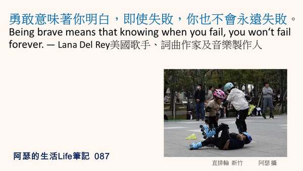 Being brave means that knowing when you fail, you won‘t fail forever. ― Lana Del Rey美國歌手、詞曲作家及音樂製作人