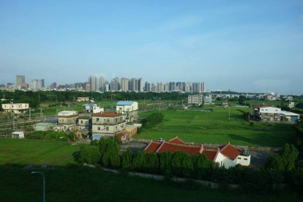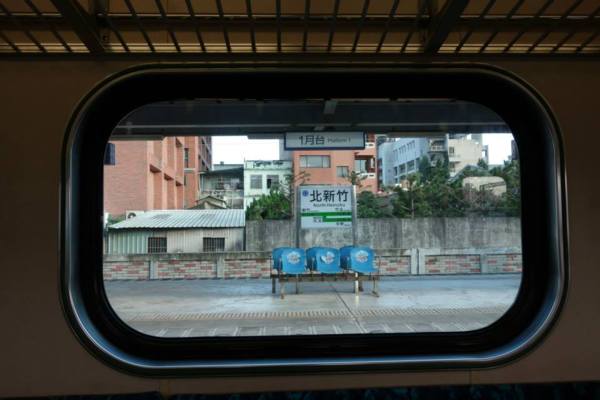 從台鐵北新竹站出發後,沿途停靠四站,就來到高鐵竹北站旁的六家站。從車內看出車窗外的風景,就像看一幅幅會移動的畫。雖然竹北已經有一些高樓,還是可看到稻田和鄉間綠油油的景色。2015/5/30攝