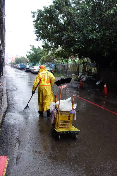 連日陰雨又寒冷,對這種不見陽光的日子,心理難免有些嘀咕。走在路上,看見前方有一位環保局的清潔人員穿雨衣沿路掃地和撿拾垃圾,還拉一台小車子,在雨中緩步向前。相較之下,我只撐傘走一小段路,不用整天淋雨,比他幸福太多,心中的不滿就減少許多,還要感謝這些清潔人員,讓我們有潔淨的環境。 2016/3/23 攝於新竹市