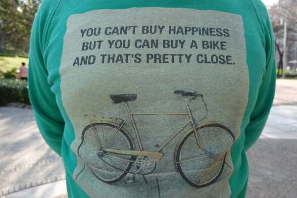 路上看見一個人的T恤後面印著一台自行車,上面寫著:你不能買到快樂,但是你可以買一台自行車,那也差不多(買到快樂)。我完全同意這樣的說法,想想看一台自行車可以帶給你多少快樂? 2023年1月