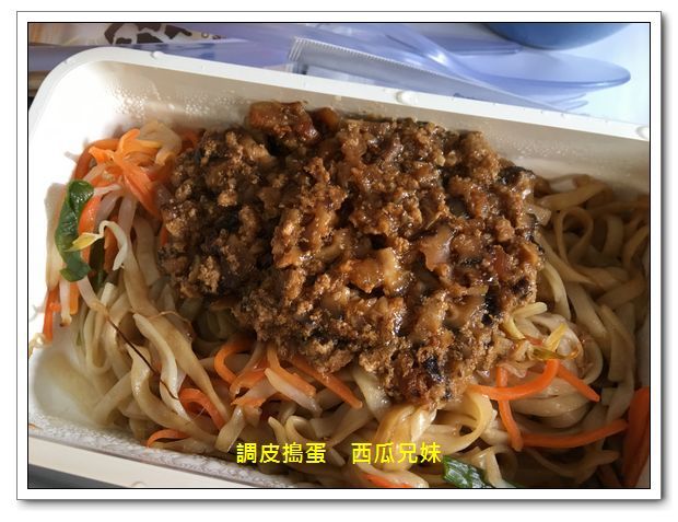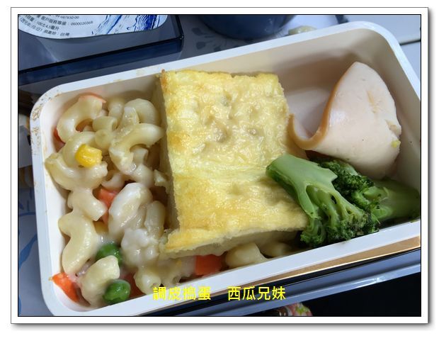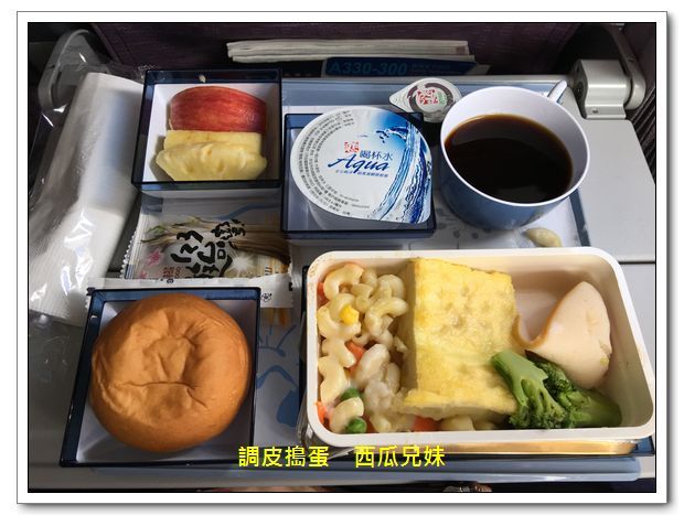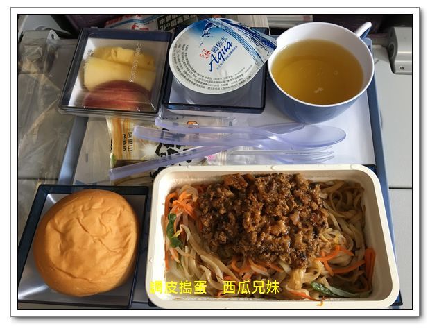 起飛沒多久,空姐們就開始送餐來啦!