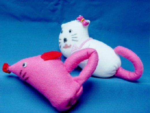 這是我用襪子和綿花作成的老鼠和小貓咪