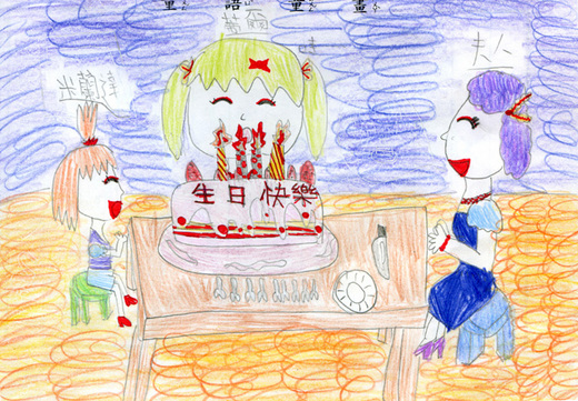 夫人把蛋糕偷偷在她們在玩的時候拿了出來,