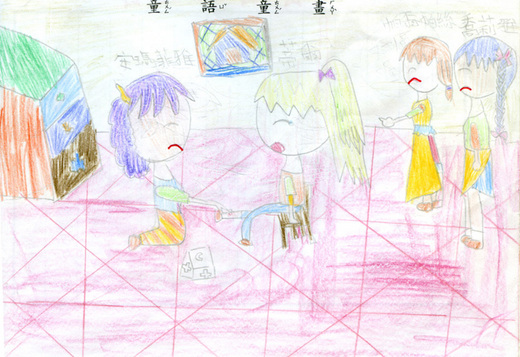 蒂爾一踏進客廳就已經看見她們了,但還是裝成沒看見她們的,終於,她等到一個機會,小妹跳過去, 「米蘭達和克里絲塔」她們嚇了一跳, 「安雅,別躲了啦!」, 「喔!原來妳已經看見我了!」安雅說, 小妹帶著她...