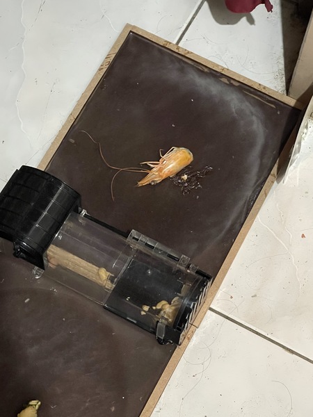 20251111晚間這隻老鼠被圍捕慌張亂衝,黏鼠板建功。