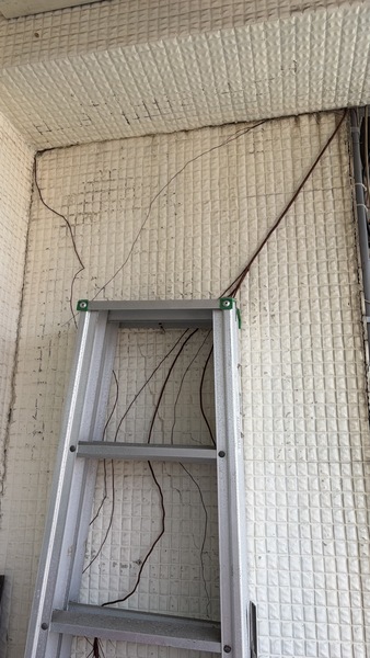 20260206加貼:昨天下午隔壁26號的4樓哈嚕的大兒子高先生到家裡來說能不能看你們露台是不是有種樹樹根都長到我們家來了,我陪著他到露台去查看,知道是他們樓上也就是26號的5樓他的阿姨紀太太的房子前面長出的那棵被我拔除的榕樹的根長到他們家的陽台,情形如附圖。 於是他去買除草劑,今天上午10點多到我們家的露台, 我們兩個通力合作把這一棵榕樹新長的幼枝條,加強上藥處理,以下是我和他用Line互聊的紀錄。