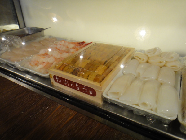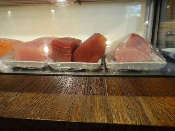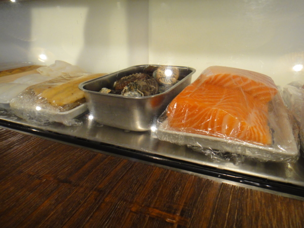 吧檯的冰櫃和裡面的食材