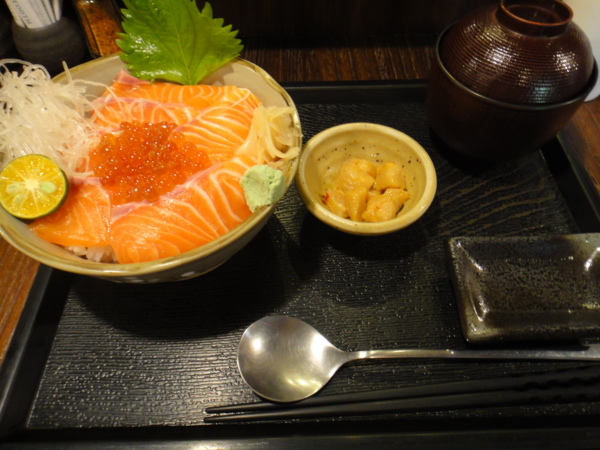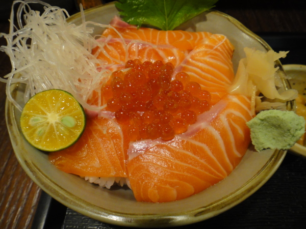 丼飯被鮭魚和鮭魚卵滿滿覆蓋,鮭魚卵用清酒和調味料稍微醃漬過,有股淡淡的酒香味,鮭魚不用說,每次去丼屋鮭魚都處理的挺好,也非常新鮮。