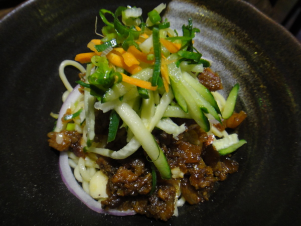 全店唯一的主食類食品,小黃瓜絲、洋蔥絲、紅蘿蔔絲、檸檬汁配上特調的肉燥,麵條Q彈,肉燥加麵配上青菜中合成不油膩的口感,加上微酸的檸檬,令人對這唯一的主食印象深刻