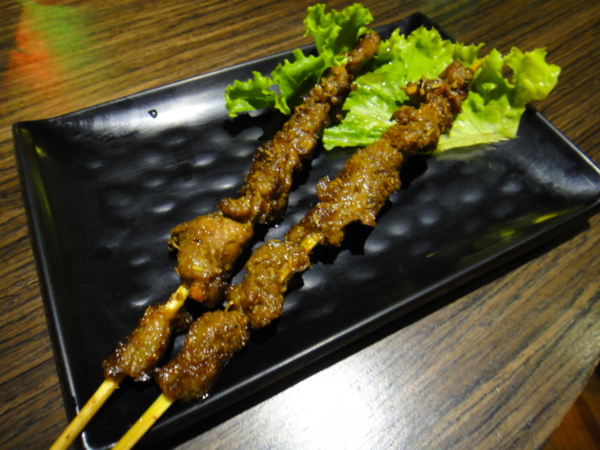 三種肉串我跟室友都認為這串是最成功的,雞腿肉非常鮮嫩,咬下去同時肉跟汁的味道一起出來,骨頭完全被處理之後將腿肉的精華完全保留其中