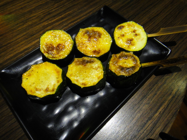 店家強烈推薦的特色青菜,我以前沒聽過的食物,考完之後瓜肉很軟很嫩,我吃了第一口之後覺得超級苦!室友說有嗎?明明就沒有苦味,然後我問店家他們也說不會苦阿…後來室友吃了我那串…他說超級苦!!所以我的烤櫛瓜是偏離值XD上面撒了些胡椒一起烤,可能是為了提味吧(好苦好苦)><