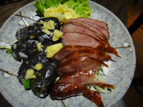 十分普通,飛魚卵口味吃起來跟淡水老街賣的差不多,一般香腸也普通