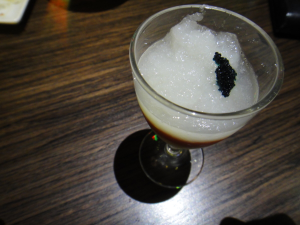 放在一口杯裡的生蠔,上面有一小搓魚子醬,還有一層蘿蔔泥和一些醬汁,組合成這道菜,生蠔處理的沒有腥味,調味也很成功,一口杯讓人方便實用,個人很喜歡(可惜魚子醬太少不太能感受到它的味道><)