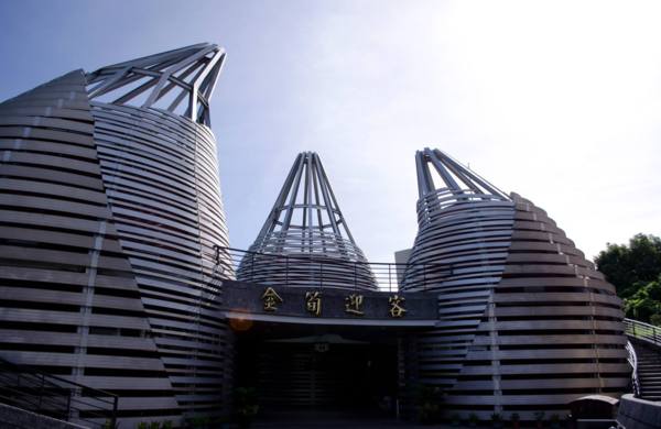 離開西螺跟雲林,準備前往今天設定的第一站:日月潭,騎過竹山,就接上往日月潭的路,途中先經過了號稱全台灣最豪華的七星級廁所-紫南宮,恩,周邊已經整個變成了一個商圈了,廁所裡面有噴水池還真的滿豪華的,外型做成竹筍的形狀凸顯當地的特產,也算是一種小鎮行銷吧。
