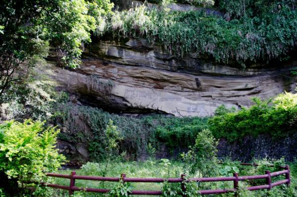 車站附近的地圖標示有一座神仙瀑布很吸引我們,決定增加一個地點,結果到瀑布旁發現因為颱風跟地震(?)所以地形改變,瀑布幾乎已經消失,進去瀑布的路也被黃線圍起來,但都到瀑布旁了,怎麼能就這樣離開呢?偷偷跨進黃線,發現瀑布真的已經消失(只剩下細細的一絲水),而且該地點也荒廢許久,草都長得跟人一樣高了。