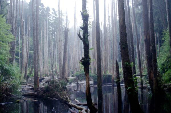忘憂森林是當年921地震時,土石流崩落而形成的掩塞湖,造成湖中原本生長的柳杉慢慢枯死,有的就剩下樹幹挺立在原處,有的就倒在旁邊,湖裡面有無數的蝌蚪,密度非常高。我們到忘憂森林山下入口時,旁邊有為數不少的商家在載客上山,上山100下山100,問了路人說上山來回只要走1.5小時,看看時間決定用走的,結果我們的海軍陸戰隊北迪,行進速度非常緩慢,不過也大概來回1.5小時(本來說要1小時爆衝完成的),上到忘憂森林,景色真的很特別,我們三人研究了一下覺得應該是在有陽光直射或是大霧看起來是最美的,如果沒有太陽也沒有霧,就比較普通一些,可能因為是自己辛苦爬上來的,所以看到覺得非常值得,下山之後路旁有水蜜桃,一人一顆,運動完的水果總是特別好吃。